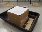 The second presentation was about retaining walls and included a reinforced earth demonstration. Students were asked to build a sand cube without paper and a sand cube with paper every 1.5 inches in removable wood forms. The paper served as a type of soil reinforcement. They were asked what they thought would happen if they stood on the cubes and why. The students were skeptical that either of the sand cubes would hold their weight and were impressed when the sand cube reinforced with paper worked. A quick discussion followed to connect the demonstration to how soil is strong in compression but weak in tension and that reinforcement is added to provide tensile strength to the soil.