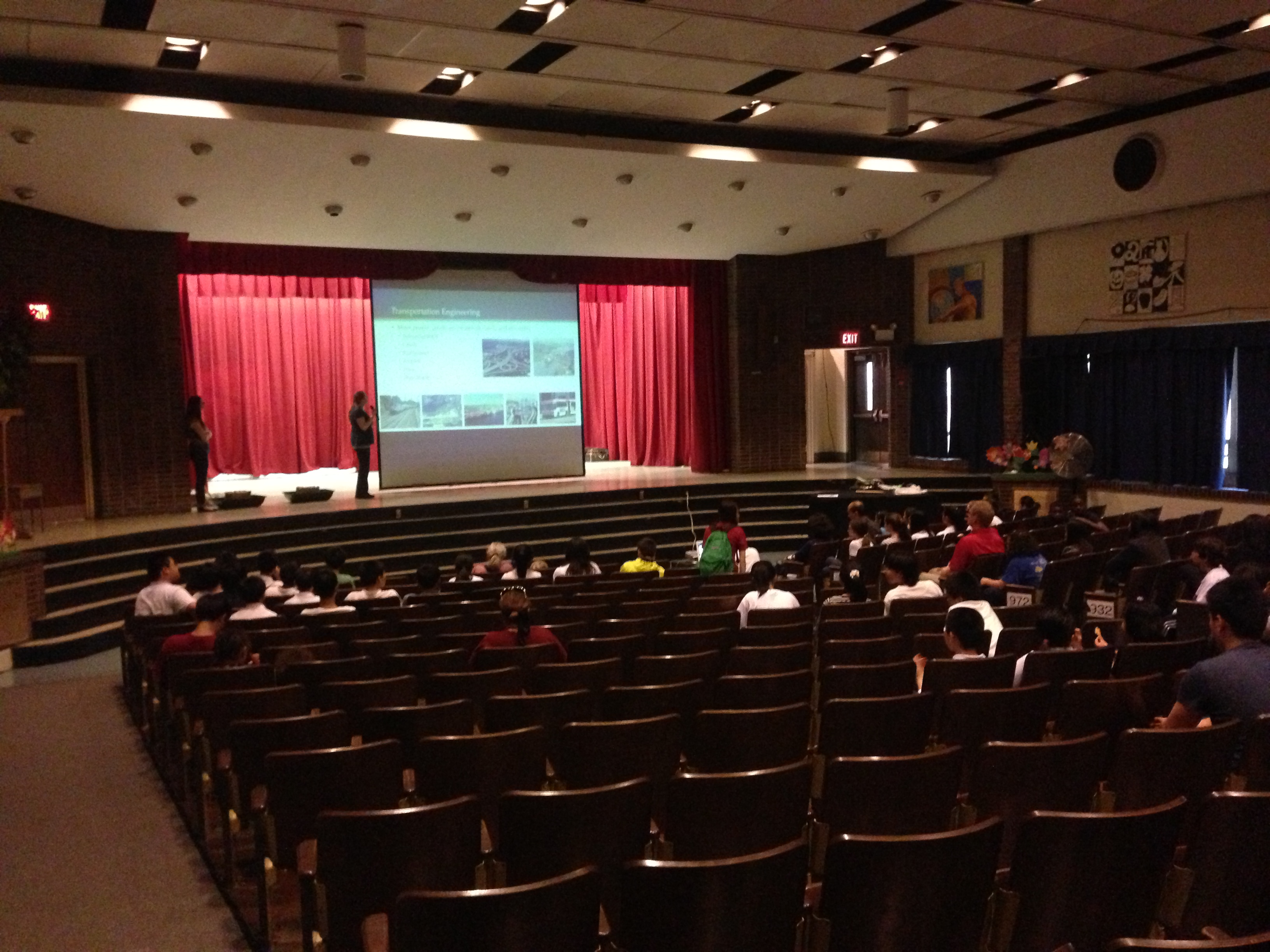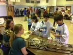 Following the presentations, students and their parents walked around to each of the demonstrations. The YMF set up a table with a structure building activity, in which students were able to construct their own bridges and buildings using toothpicks and gumdrops. Also on display at the YMF table was a foundations demonstration which used Styrofoam and gelatin to show how pile foundations can prevent buildings from collapsing during an earthquake. Some of the students really enjoyed putting their gumdrop buildings into the earthquake display to show the strength of their buildings.